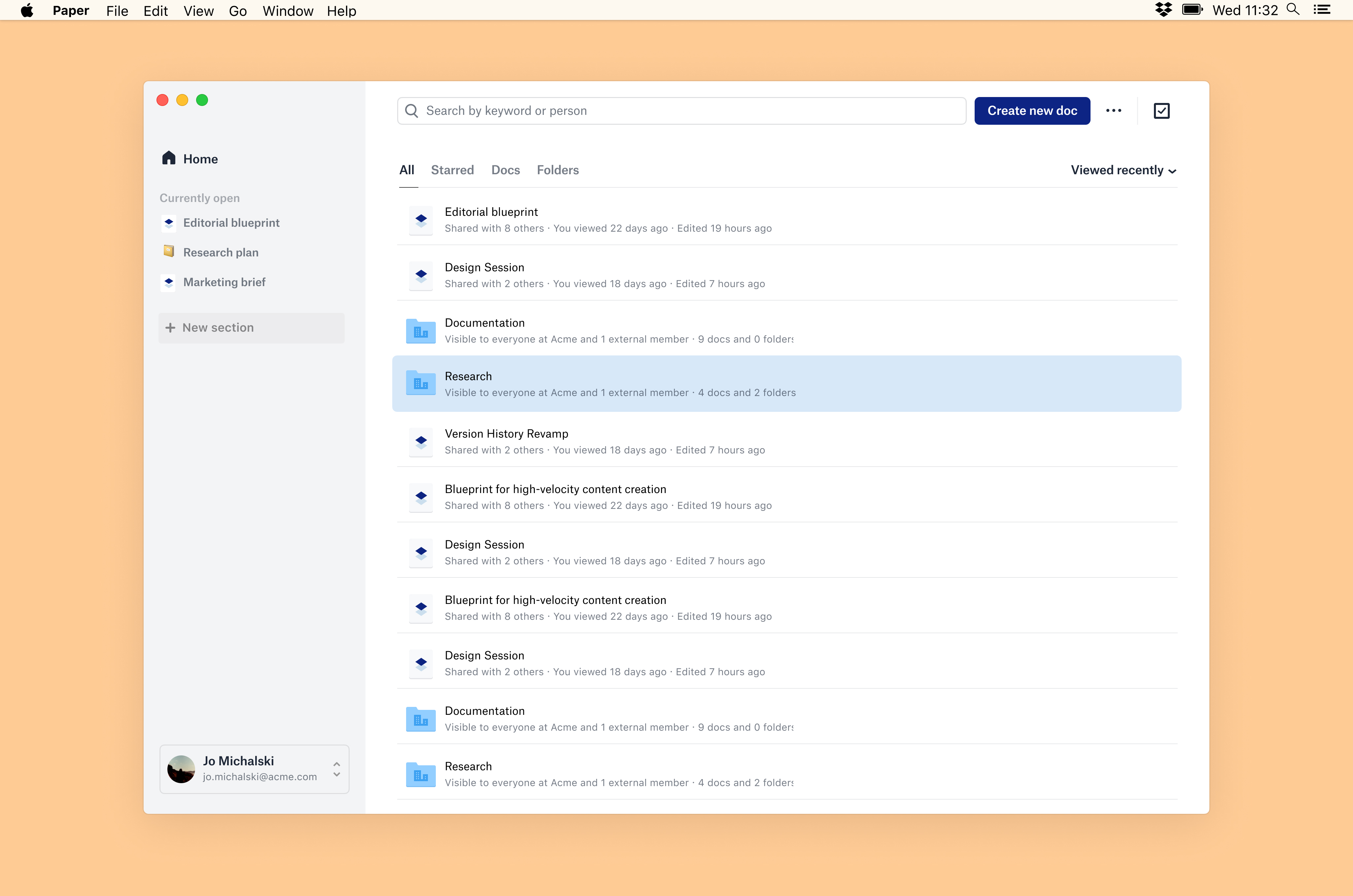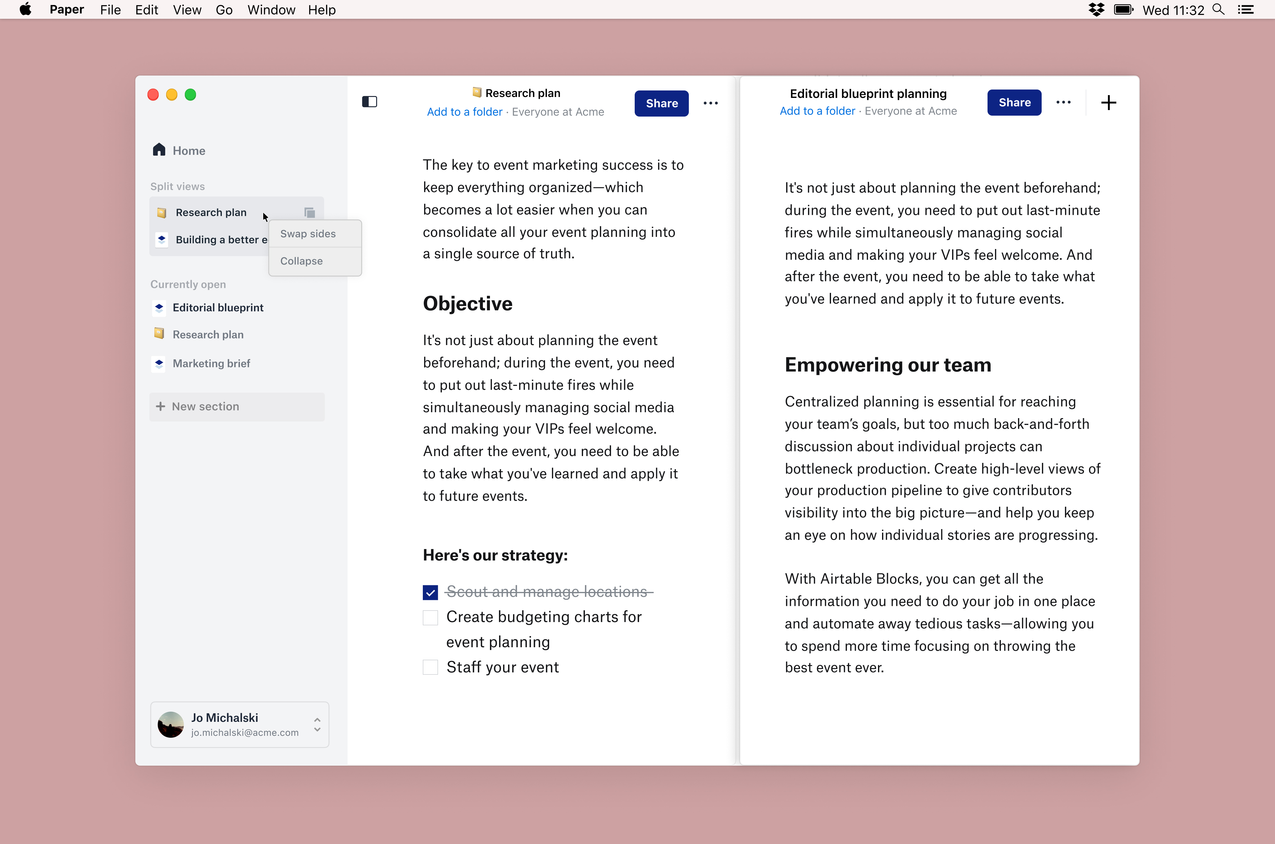 Create and access docs quickly, keep your workspace organized, and focus on your work without distractions with a dedicated Paper desktop app. I inherited a nascent initiative and was responsible for growing and expanding its features and user base.